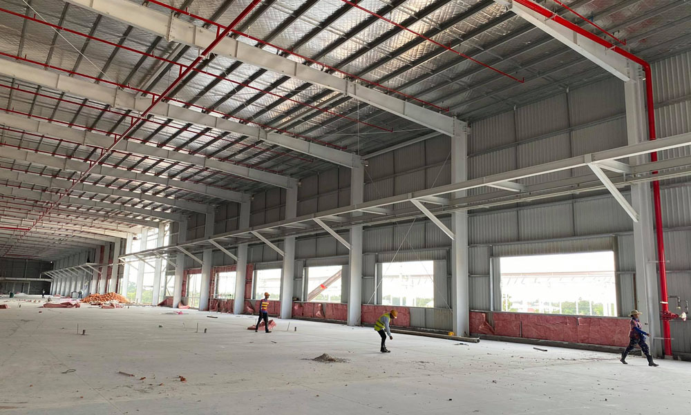 Các công trình nhà xưởng thép quy mô lớn (từ 1.500m² trở lên) có chi phí trung bình từ 1.600.000 – 2.500.000 VNĐ/m².