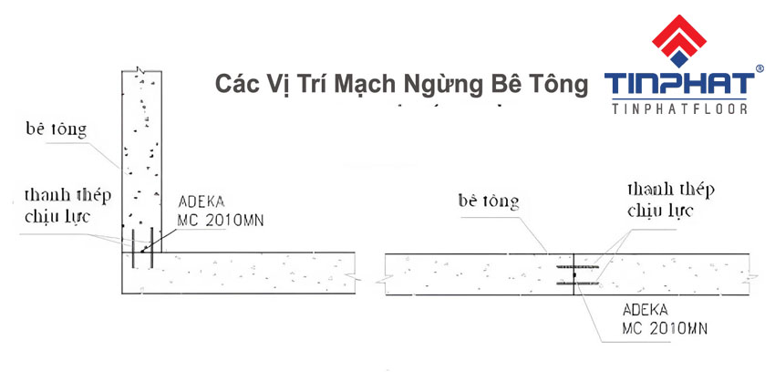 Mạch ngừng thường bố trí trùng với khe co giãn để vừa đảm bảo kỹ thuật vừa thuận tiện cho bảo trì công trình.